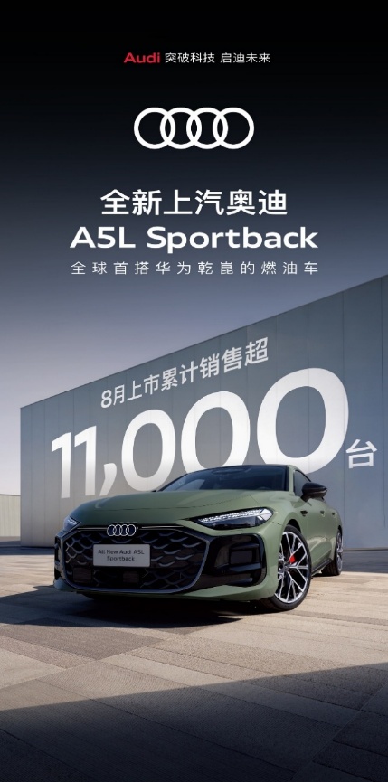 豪华品牌方面,上汽奥迪10月终端销量达6,800辆,较上月上升19.3%,较去年同期增长126.7%。截至10月底,全新上汽奥迪A5L Sportback累计销售超1.1万辆,以全维进阶实力,引领新时代豪华出行新风尚。