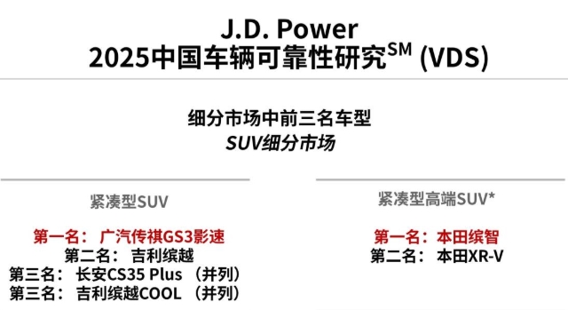 销量是产品实力的直接体现,而品质与口碑则是最好的“护城河”。据中国汽车质量网统计,影速自2023年起稳居自主品牌小型SUV质量冠军,是大厂品质的有力体现。同时,在《J.D.Power2025中国车辆可靠性研究(VDS)》 中,影速荣获紧凑型SUV可靠性第一名;在《J.D.Power2025中国汽车产品魅力指数研究(APEAL)》 中,影速同样位列紧凑型SUV榜首,意味着用户在实际用车中,对其设计、性能、智能化及驾驶感受给予了极高的评价。