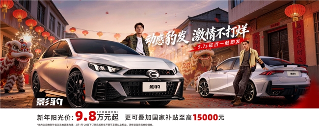 如果看到这里,大家觉得影豹还不错,也可以到店看看,说不定节前能提到现车。节前没时间的,也可以在春节期间到店,广汽传祺春节不打烊。2月影豹政策依然不错,限时9.8万元起,还能叠加至高15000元国家补贴。