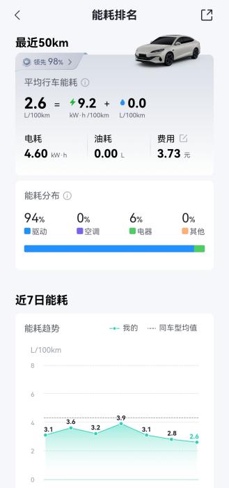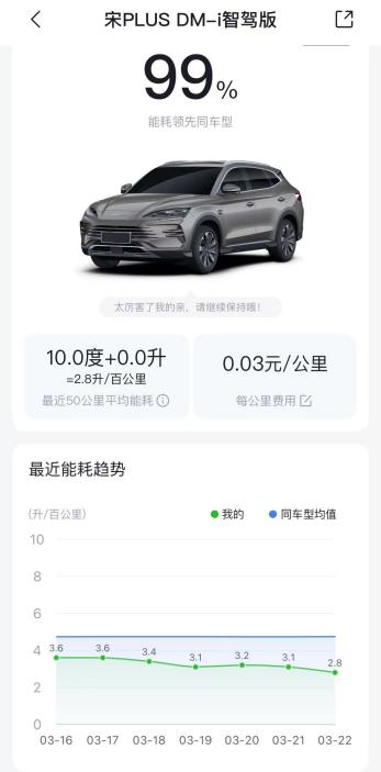 对于必须用油的场景比亚迪也给出了答案,OTA后百公里2.6L油耗,加油也不心疼。即便跑长途需要烧油,比亚迪插混同样底气十足。第五代DM技术通过OTA升级,百公里亏电油耗已优化至2.6L,再创全球插混油耗新低。这意味着,即使在亏电状态下行驶,每公里油费成本也仅约0.23元。