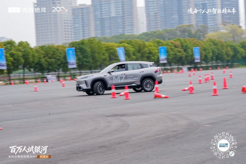 起步、加速,为安全起见,我还是有所保留,以时速80公里的速度冲向模拟障碍,快速打方向左右紧急避让——那一刻,我准备迎接剧烈侧倾和轮胎嘶叫。但很快,我发现,我驾驶的吉利银河M7让我深感意外。从始至终,吉利银河M7车身异常稳定,转向精准,车尾跟随利落,整套动作一气呵成。这不是简单的“稳”,而是底盘、悬挂(前麦弗逊+后多连杆)与G-TCS智能防滑系统协同工作的结果,是经过全球顶尖团队反复调校的扎实功底。