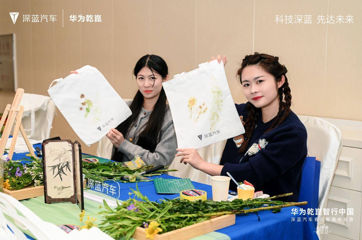 活动现场,深蓝汽车还同步打造了极具江城春日特色的互动体验区,环保手提袋植物拓染DIY、AI机器人五子棋挑战赛、畔园园林春日打卡、精致春日茶歇等环节,覆盖全年龄段用户的体验需求。用户在深度品鉴产品之余,沉浸式感受武汉樱花季的春日浪漫与自然园林的松弛氛围,真正实现了从“看车选车”到“生活方式体验”的价值升维。