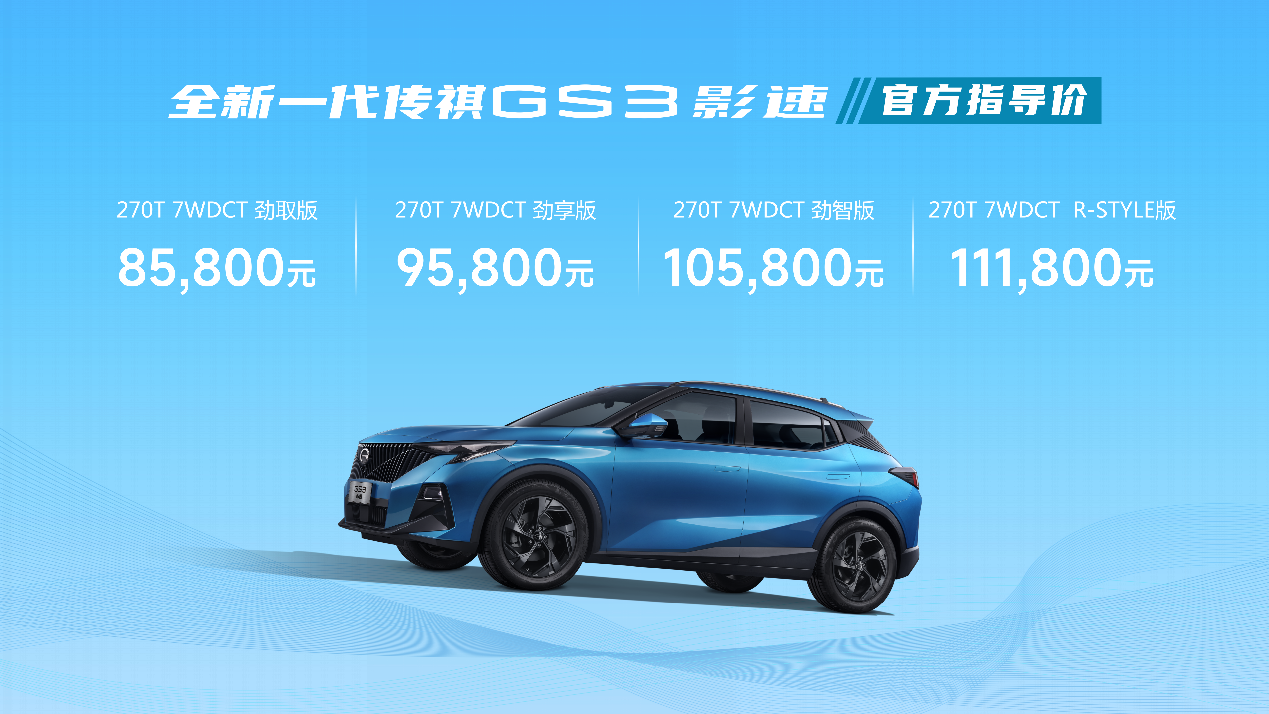 全新一代传祺GS3·影速不仅以行业首创3年8折保值换购政策,打破小型SUV保值率天花板,还用百公里6.18L的超低油耗、媲美紧凑型SUV的大空间、远超电车的动控性能,完美诠释“省、大、劲”的产品内涵,为消费者提供了10万级SUV最优解!作为影系家族的全新成员,价值一路狂飙的全新一代传祺GS3·影速,将成为广汽传祺新的增量引擎,引爆小型SUV细分市场!