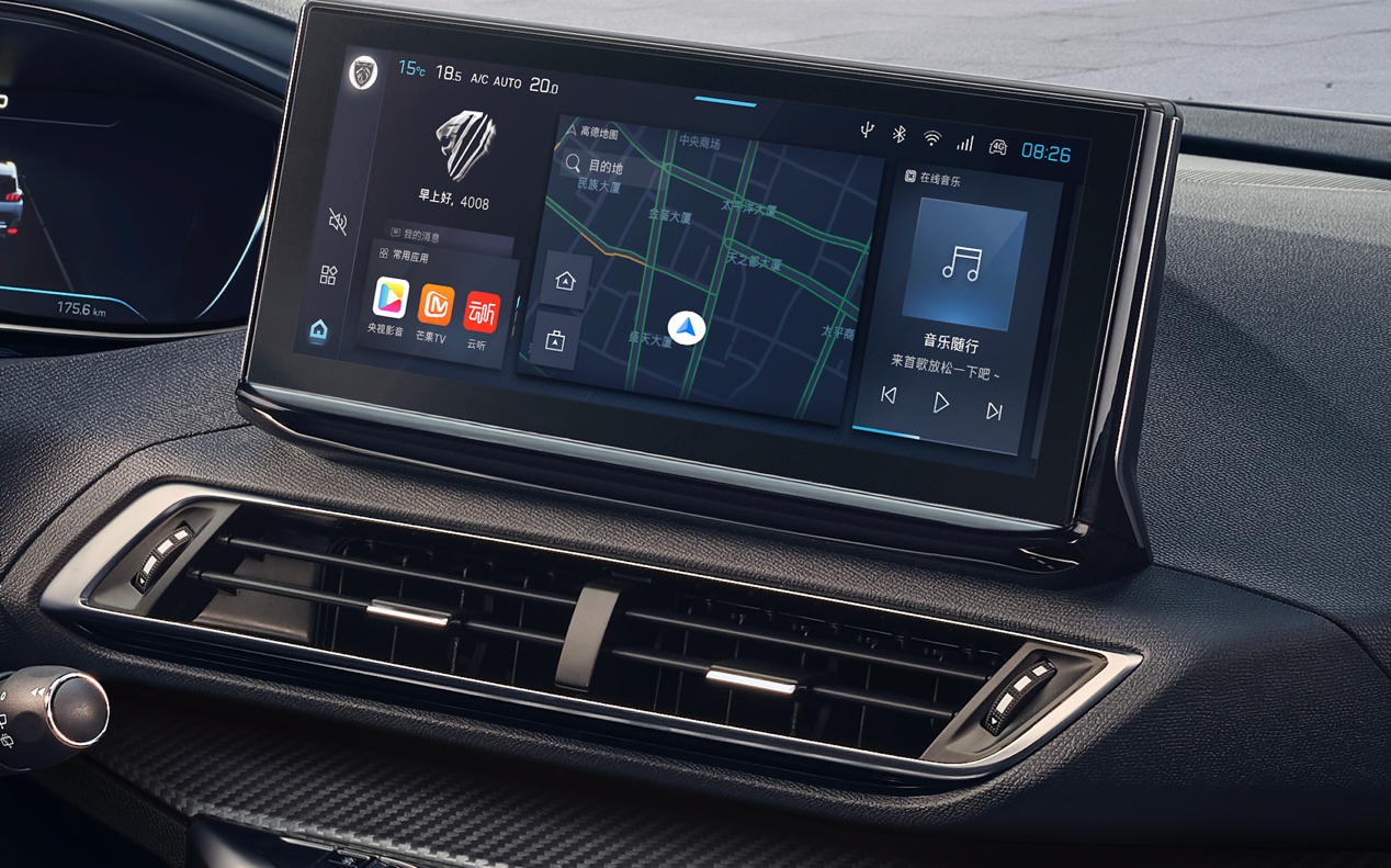 新4008升级了全新一代Blue-i 3.0智能网联系统,集智能语音交互、在线导航、AR实景导航、在线音乐、在线视频等功能于一体,应用更丰富,并且拥有生动的AI管家,陪伴驾驶更有趣。
