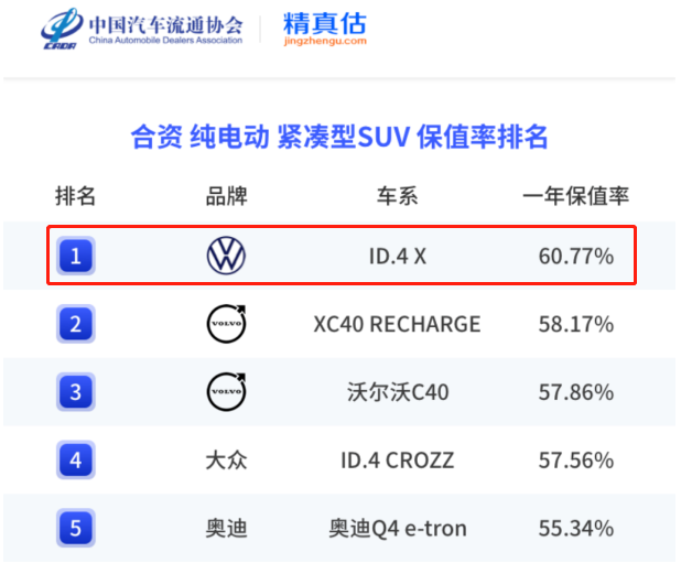 凭借高颜值、高配置以及出色的耐用性,ID.家族保有量和用户口碑持续向上;加上今年推出的ID.Care保值包权益,进一步增强纯电消费者的购买信心,降低用户拥车成本。根据中国汽车流通协会和精真估联合发布的《2024上半年中国汽车保值率研究报告》,ID.3、ID.4 X分别再度荣获合资纯电动紧凑型车(1年车龄)和合资纯电动紧凑型SUV(1年车龄)两大细分市场冠军。高保值率、低拥车成本,双重保障,放心可靠。