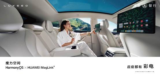 HarmonyOS智能座舱再度升级,智慧座舱结合HUAWEI MagLink,可轻松为后排扩展屏幕,让人人都有大彩电;首发萌宠互动壁纸,妙趣出行,一路陪伴;HUAWEI SOUND音响,标志性的星环散射体,复刻歌剧院体验,独创涡轮超重低音单元带来超强低音震撼,打造年轻人更爱的移动live house。