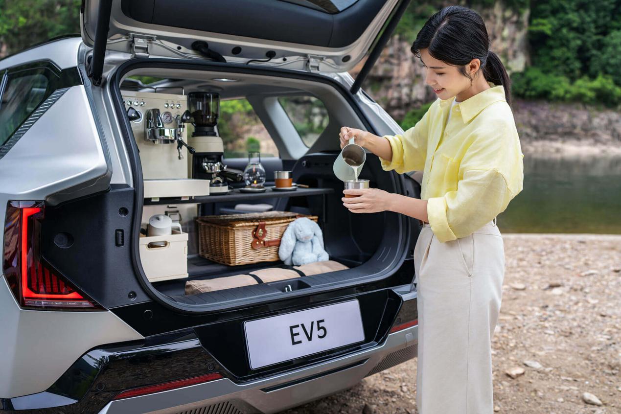 520出行,或许你想为爱人准备鲜花、礼物,还计划来一场浪漫户外野餐,这时2025款EV5的超大空间就派上用场了。2025款EV5基于纯电平台E-GMP打造,车长达到4615mm,轴距达2750mm,短前后悬的设计让座舱空间利用率发挥到最大化,前后排乘客都能享受到宽敞、舒适的出行体验。而且把二排座椅纯平折叠后,后备厢容积能从513L瞬间扩容到 1718L,轻松装下野餐的帐篷、折叠桌椅、美食篮,以及为爱人准备的惊喜礼物。