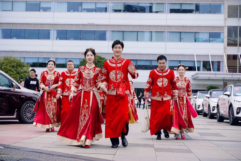 2024年,东风带着新人回十堰“老家”办婚礼,开启寻根之旅。今年又结合品牌元素与武汉城市特色,为新人策划,从创意婚纱照拍摄,到婚车调度、婚宴筹备的细致安排,再到印着东风LOGO的定制喜糖与纪念礼品,每一个细节都倾注着东风的“人情味”。
