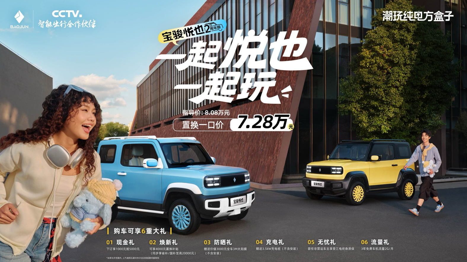 宝骏悦也作为纯电方盒子的开创者,上市两年以来收获了众多悦己者的喜爱。为回应这份热爱,宝骏汽车正式推出宝骏悦也两周年版,新增「显眼包黄」与「疗愈蓝」两款潮流配色,带来全新潮酷体验。加色不加价,置换一口价7.28万元。