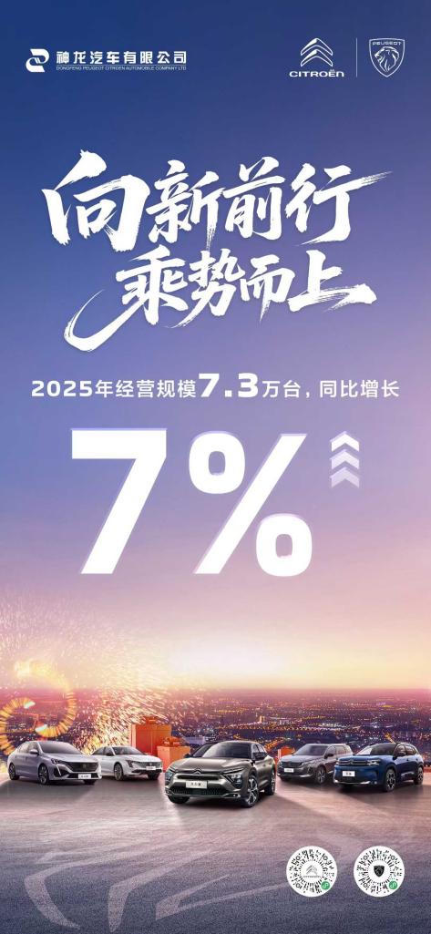 2025年,神龙汽车通过营销深化、品质坚守及协同赋能等系统化举措,推动经营实现稳健增长,同比增长7%,整体发展态势持续向好。不仅体现了企业的增长韧性,也为神龙汽车的复兴之路奠定了坚实基础。
