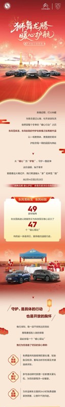 在春节假期,东风标致与东风雪铁龙还开展了以“狮舞龙腾 暖心护航”为主题,联动全国49家经销商,在高速公路服务区及热门景区设立47处“暖心驿站”。