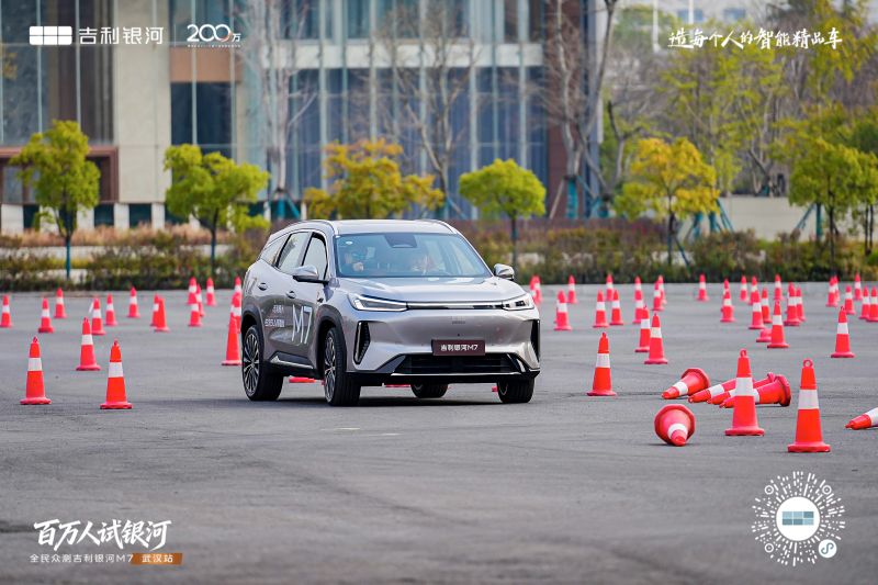 起步、加速,为安全起见,我还是有所保留,以时速80公里的速度冲向模拟障碍,快速打方向左右紧急避让——那一刻,我准备迎接剧烈侧倾和轮胎嘶叫。但很快,我发现,我驾驶的吉利银河M7让我深感意外。从始至终,吉利银河M7车身异常稳定,转向精准,车尾跟随利落,整套动作一气呵成。这不是简单的“稳”,而是底盘、悬挂(前麦弗逊+后多连杆)与G-TCS智能防滑系统协同工作的结果,是经过全球顶尖团队反复调校的扎实功底。
