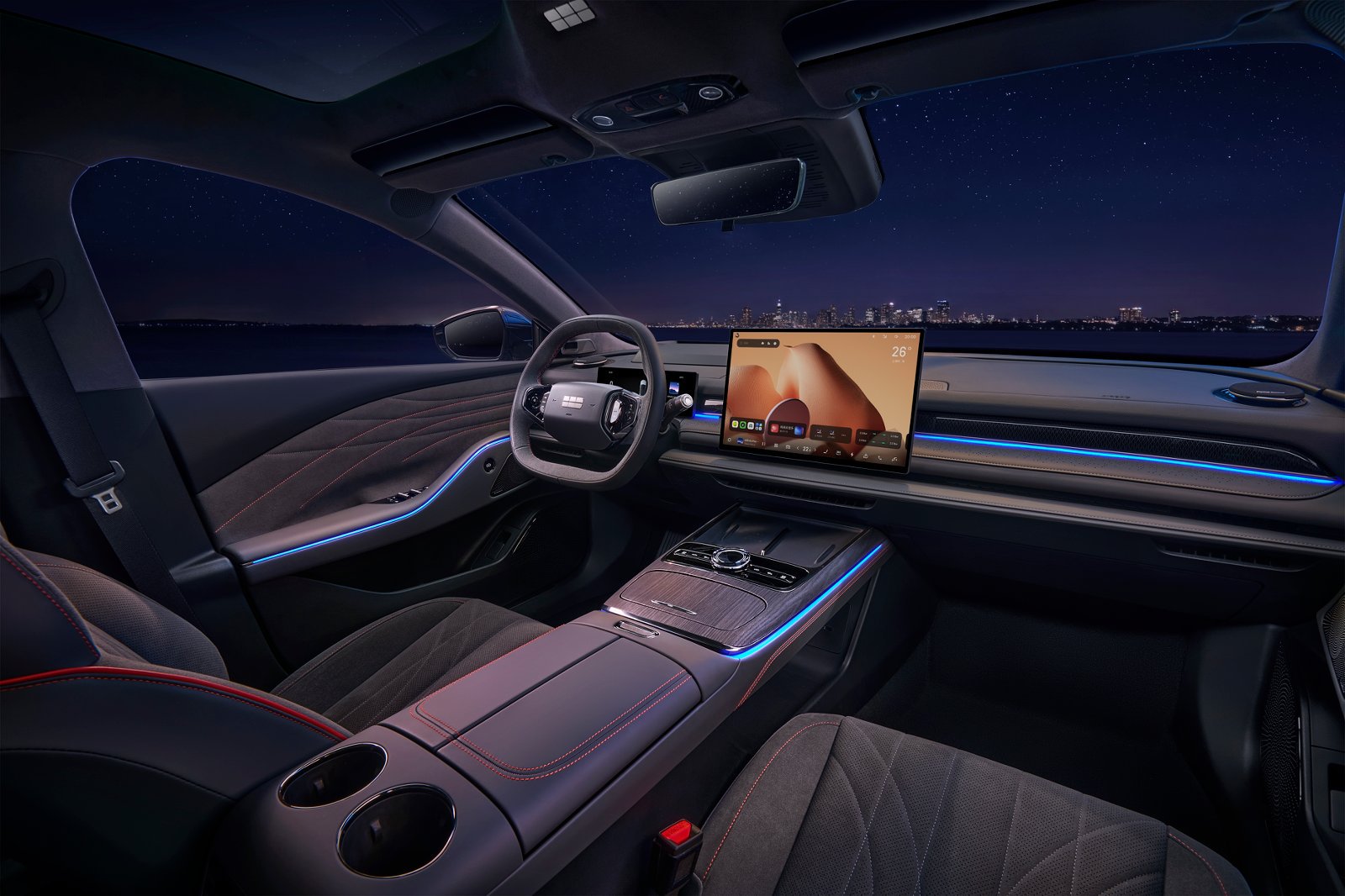 在动力与能耗上,新车搭载雷神EM-i AI电混系统(1.5L Evo+ E-DHT)凭借热效率高达47.26%的全球量产最高发动机,及星睿AI云动力2.0的智慧能量管理,百公里馈电油耗低至3.32L(CLTC),为5米级轿车最低——其满油满电综合续航高达1700km+,尽可让用户自在远行。