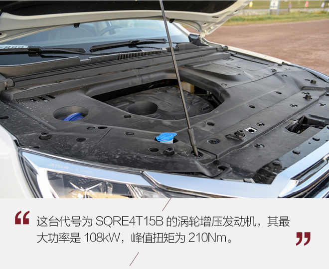 捷途X70的一大亮点,就是搭载了瑞虎8上的那台1.5T发动机(代号SQRE4T15B)。话说这台发动机,称得上是奇瑞比较拿得出手的作品。而捷途X70并没有单独针对这台发动机进行调校,账面参数并未发生变化,其最大功率是108kW,峰值扭矩为210Nm,和瑞虎8相同。虽说账面数据在同级别车型中不算优秀,但由奇瑞和AVL公司共同研发的这款发动机,热效率达到了37.1%,是目前自主品牌所有发动机中最高的,带来的好处也显而易见,那就是同级别车型里的低油耗。