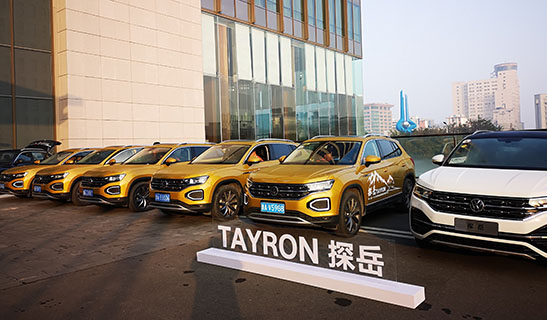 济南香格里拉。探岳试驾车一字排开,静待着试驾的媒体人。